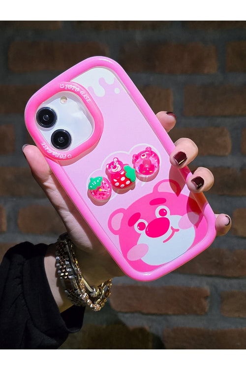 iPhone 12 Pro Max Uyumlu 3d Aynalı Ayıcık Karakterli Taşlı Koruyucu Premium Kılıf -